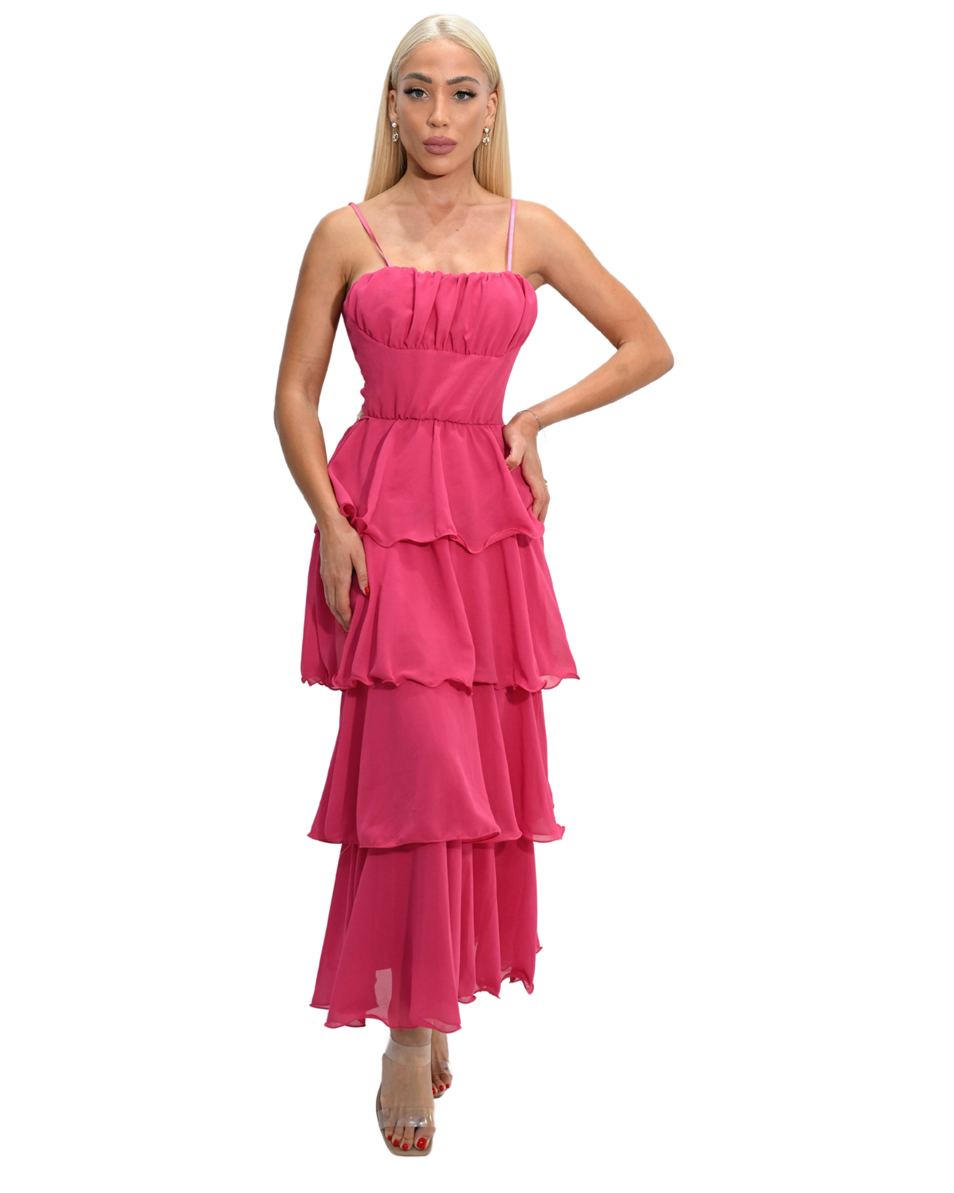 Chic Fuchsia Tiered Ruffle Maxi Dress