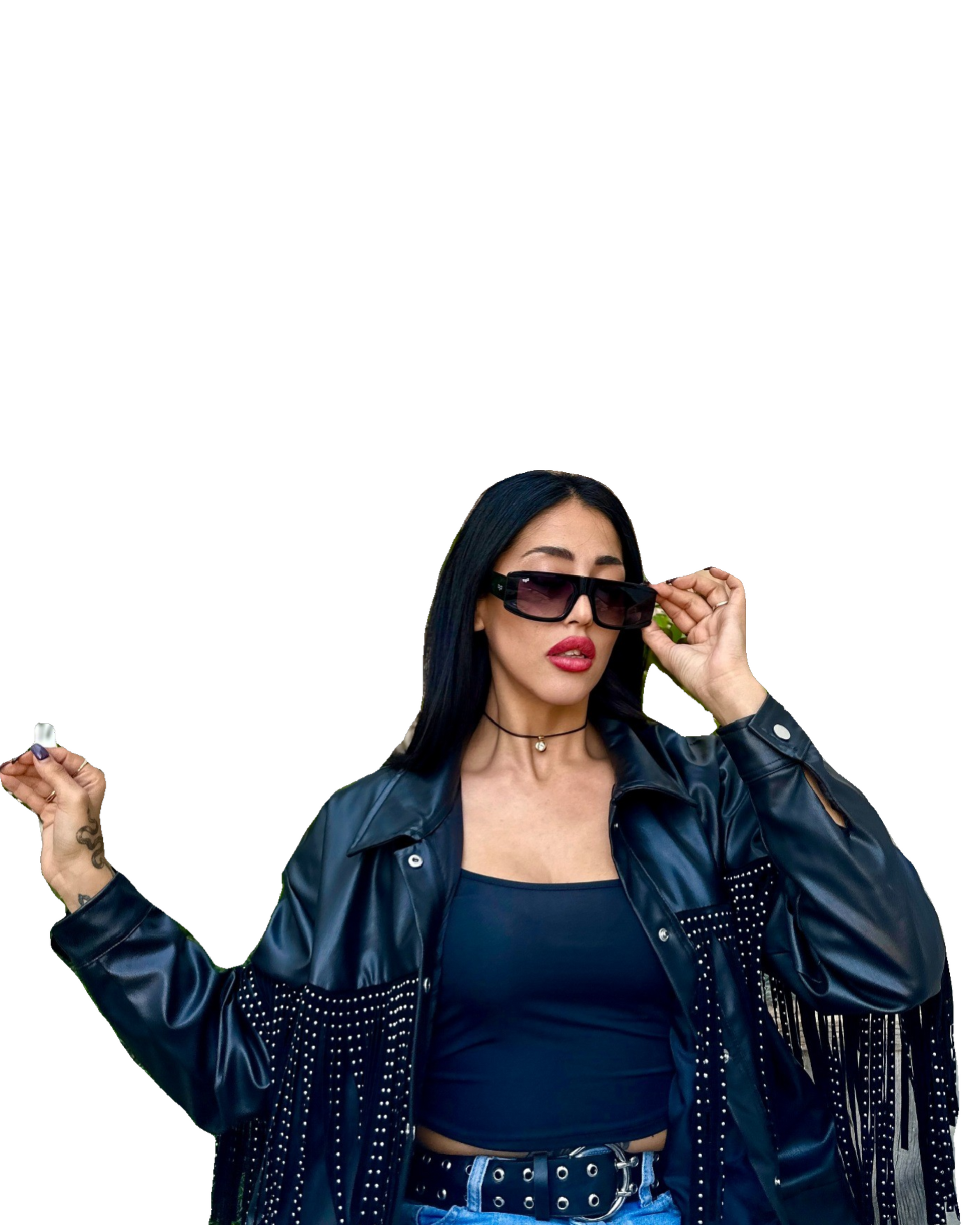 #rebelfashion #bikerchic #edgyelegance #studdedstyle #classicbiker #moderntwist #fashionstatement #daretostandout #casualrocker #nightoutessential #newglamdollsfashion
