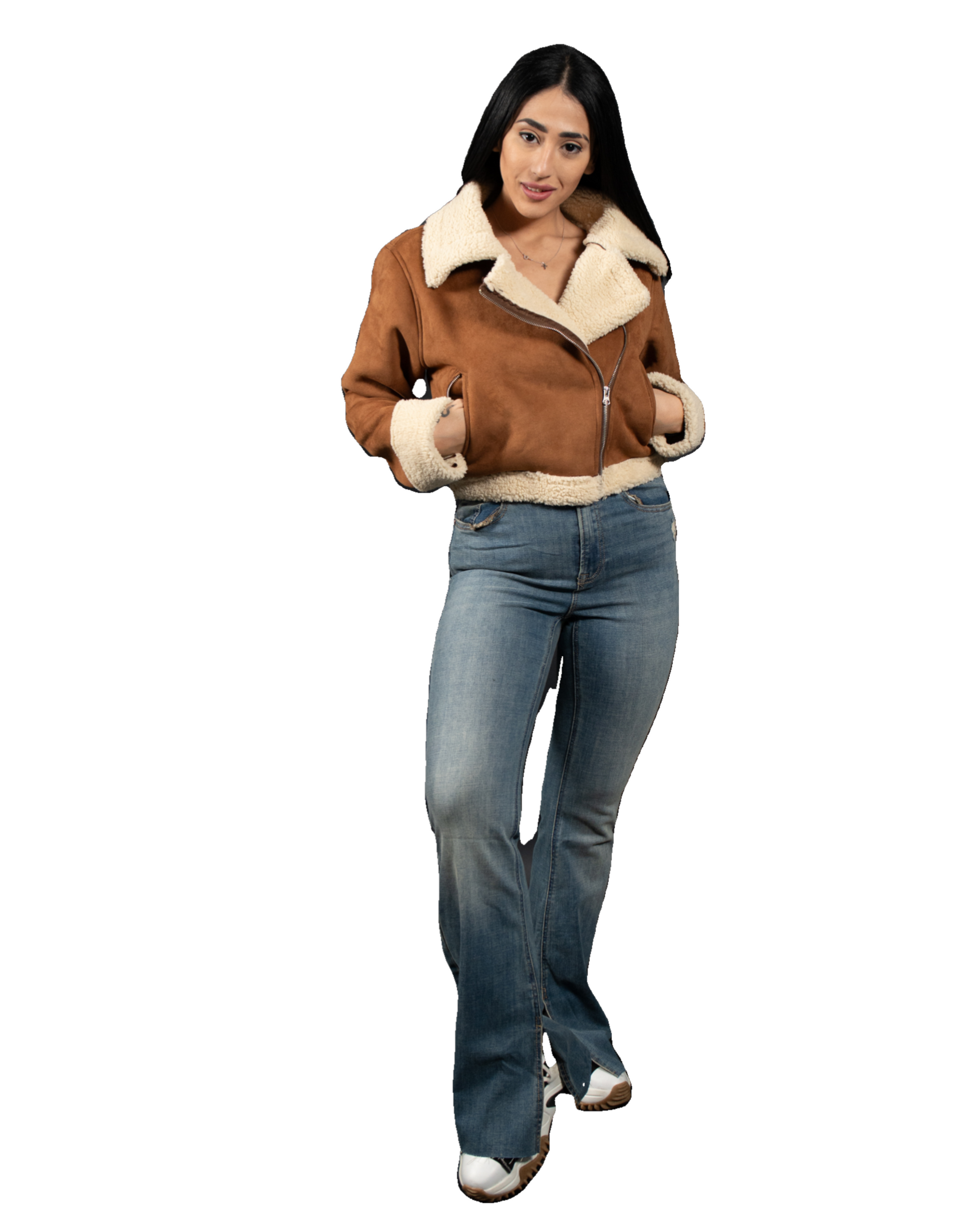 Wrap up in style with our luxurious brown shearling jacket, a must-have for those chilly days. This jacket features: